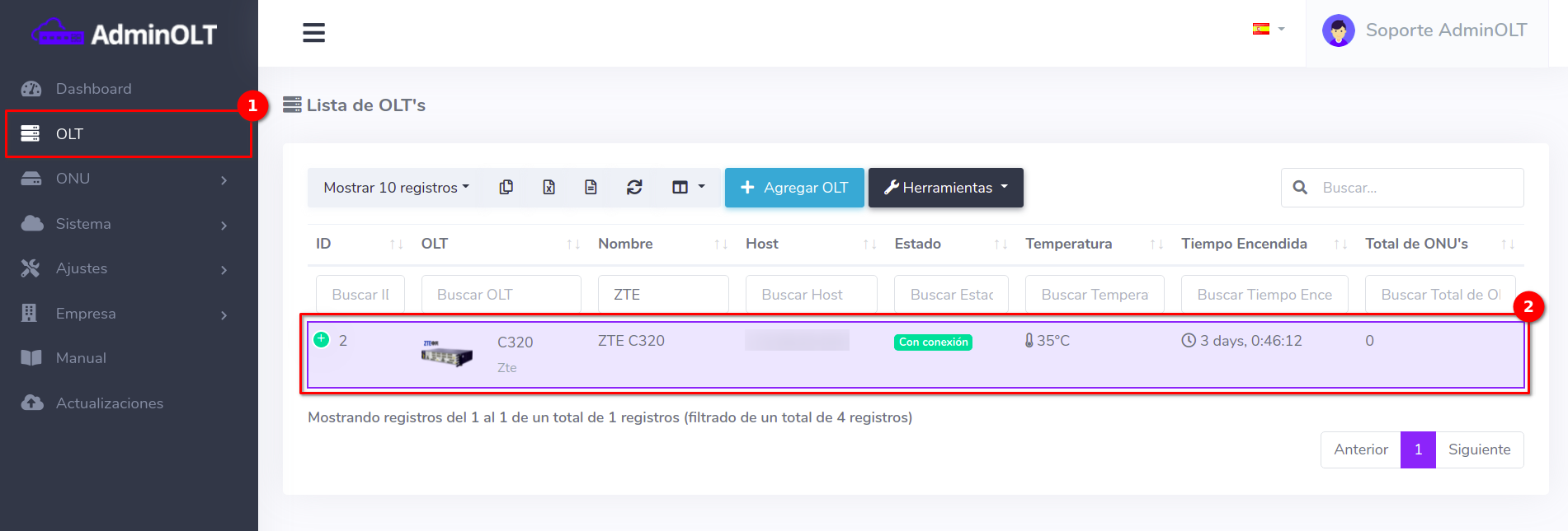 1 Seleccionar la OLT a trabajar