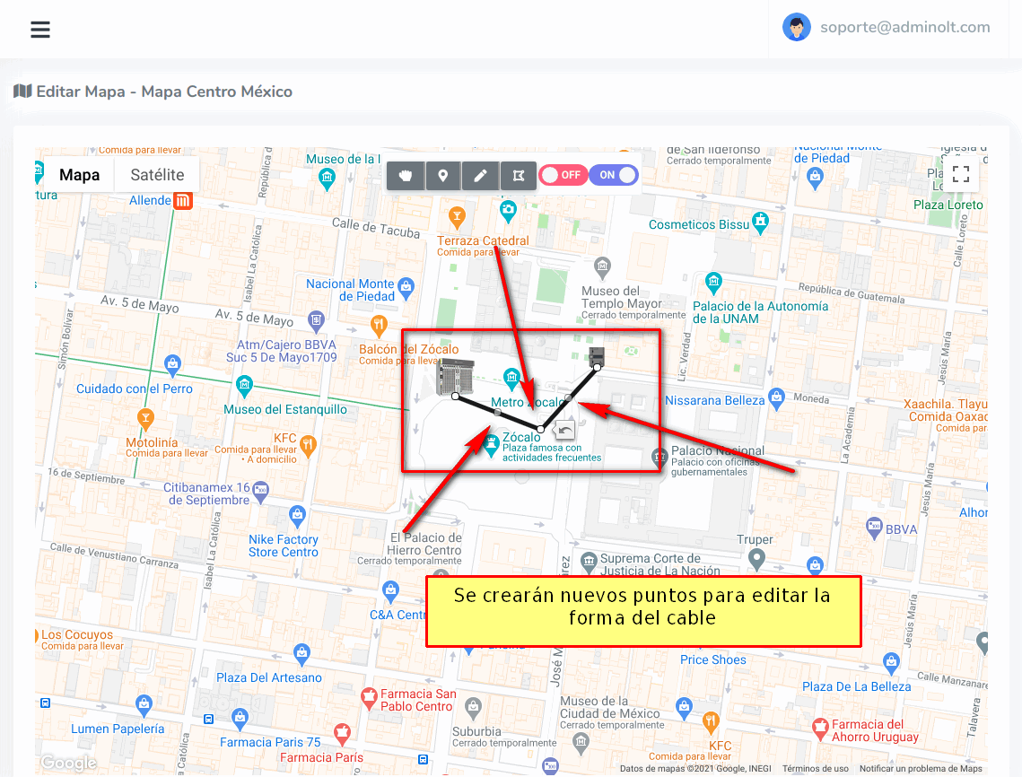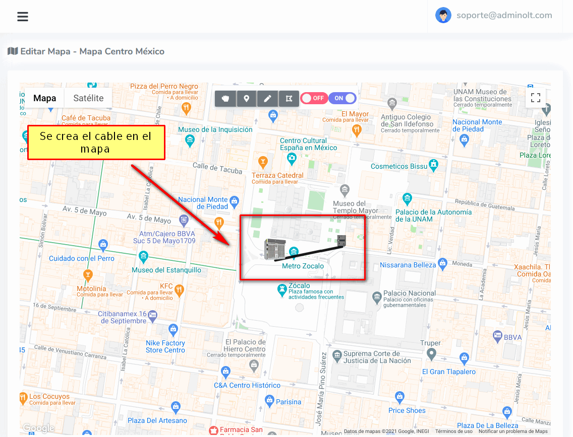 5 Se creará el cable en el mapa.