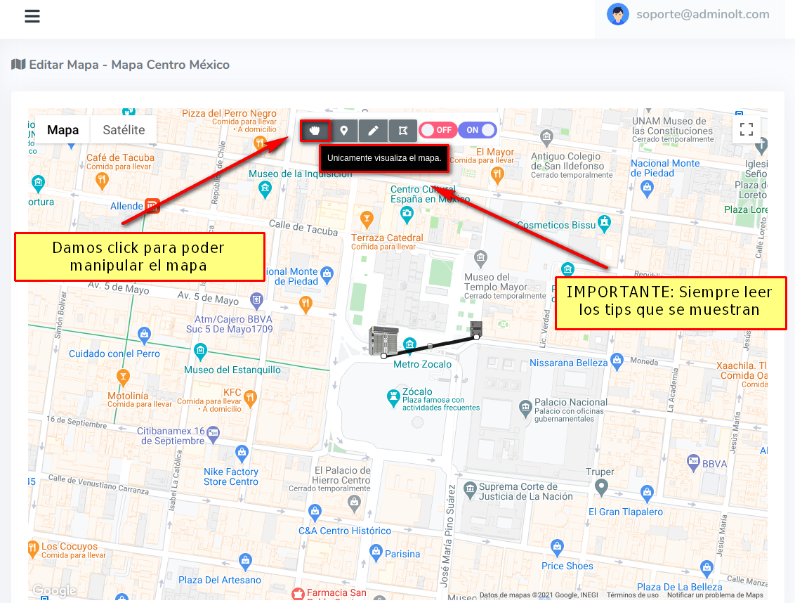 1 Poner en modo para manipular el mapa.