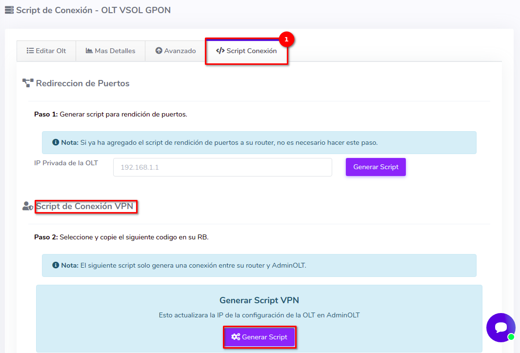 2Nos dirigimos a la pestaña Script Conexión y en el apartado Script de Conexión VPN seleccionamos el botón con la leyenda Generar Script.