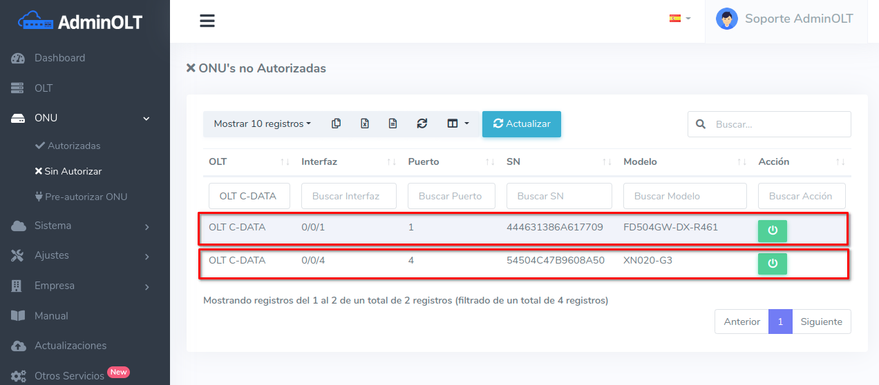 AdminOLT ahora permite autorizar ONU's C-Data utilizando configuraciones avanzadas, utilizando perfiles de línea (Line Profiles) previamente creadas en la OLT o simplemente al momento de autorizar y seleccionar Crear perfil genérico, AdminOLT se encargará de crear una configuración con los datos que usted seleccione.