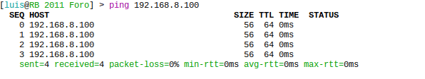 Observa los resultados. Si recibes respuestas con tiempos de respuesta (latencia), significa que el Mikrotik tiene acceso a Internet. De lo contrario, deberás verificar la configuración de red, las rutas o las interfaces de salida.