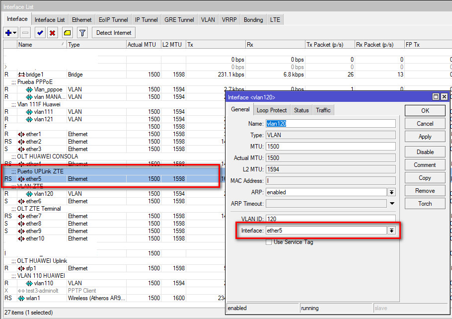 - 4-. La VLAN se asignará al puerto UPLINK de la olt ZTE