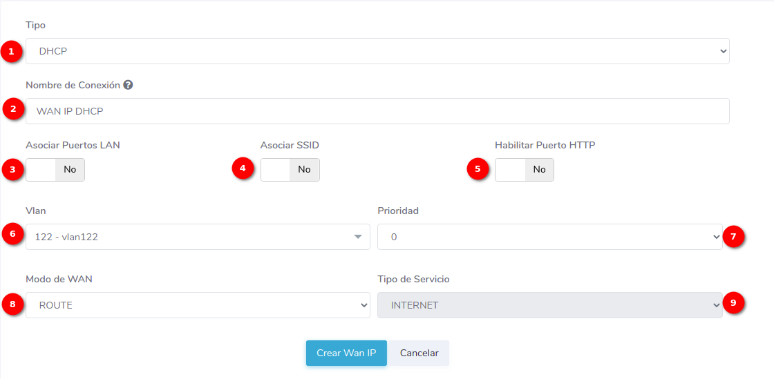 - ¿Como crear una configuración WAN IP de tipo DHCP?