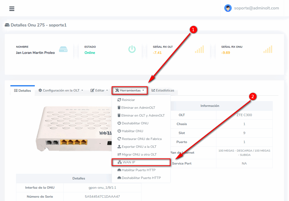 Configuración WAN IP ZTE (AdminOLT)