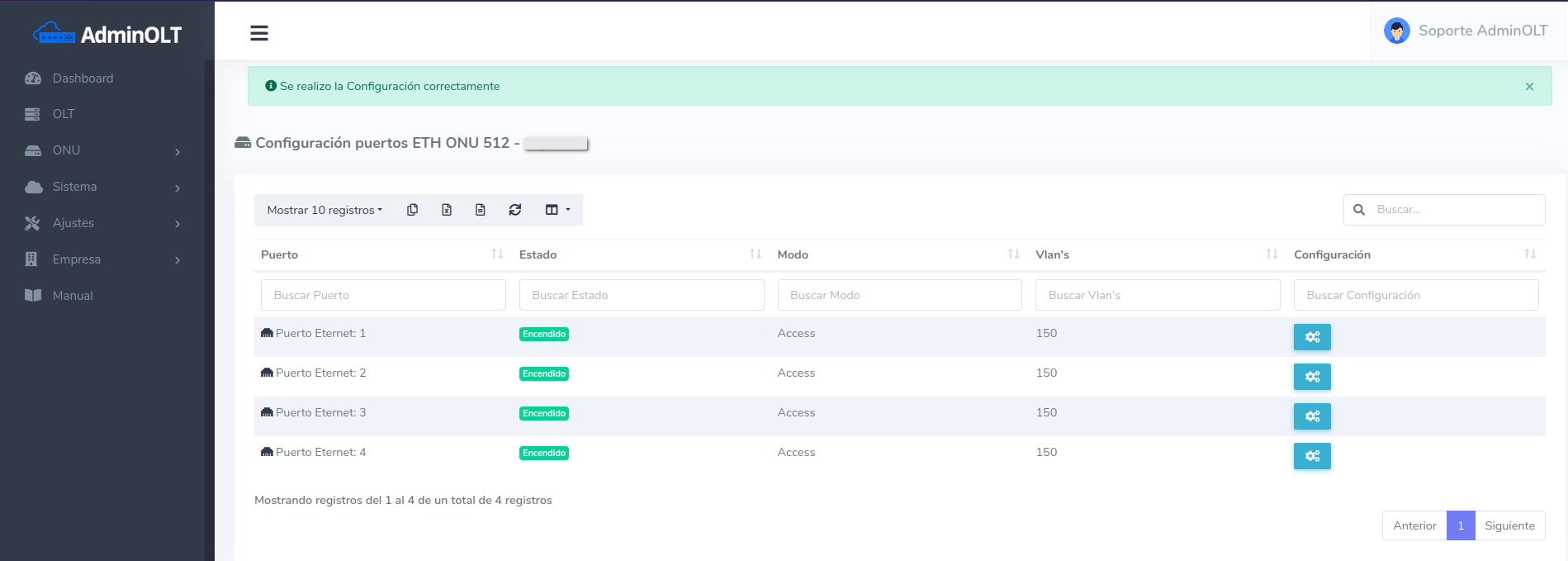 AdminOLT ha integrado una característica para hacer configuraciones de los puertos ETH. Pudiendo mandar vlans en diferentes modalidades que son Trunk, Hybrid, Access y Transparent, y asi poder colocarlas en cada uno de estos modos y que puedan ser mandadas de manera especifica sobre los puertos ETH.
