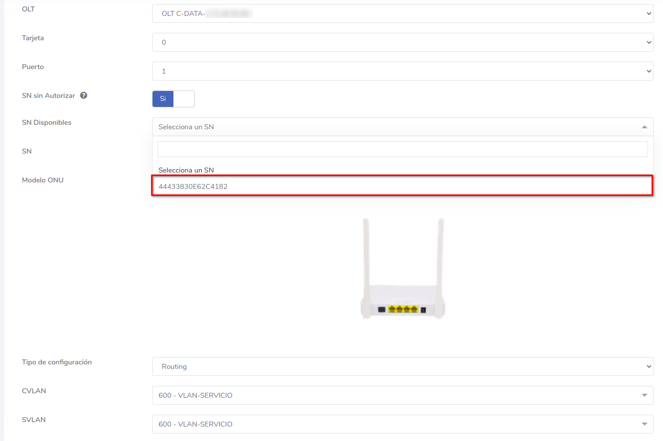 Esta función puede cambiar automáticamente datos como por ejemplo el Modelo de ONU, puerto y Tarjeta.