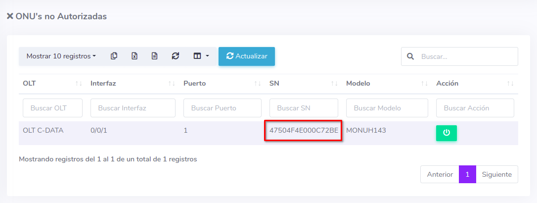 En AdminOLT podemos editar información de una ONU Autorizada en la OLT, supongamos que alguna de las ONUs que tenemos autorizadas en el sistema se estropea. Tomaremos como ejemplo esta situación para explicar el propósito de esta función. Así que en ese caso en AdminOLT al editar ONU por SN podemos tomar información de alguna ONU no Autorizada y usarla, sin perder la configuración inicial que teníamos.