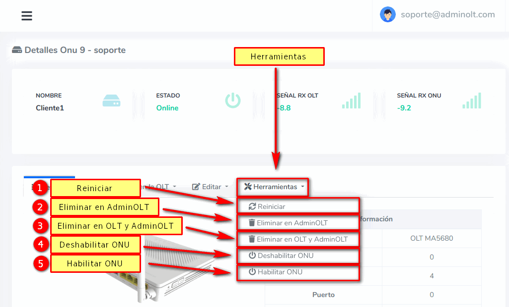 - Eliminar en AdminOLT