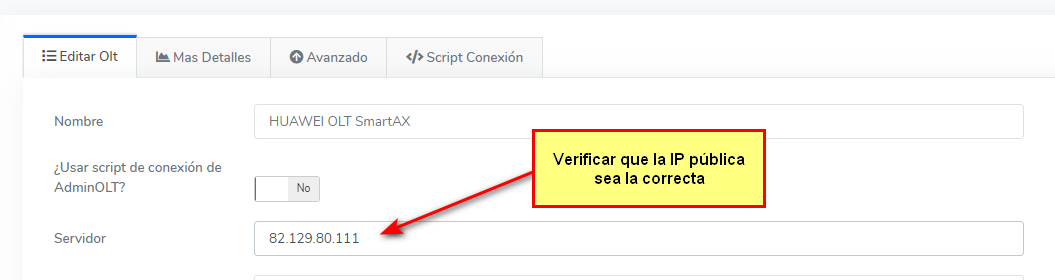 2Si la conexión es por VPN es necesario ir al apartado de script de conexión en la OLT en AdminOLT y copiar y pegar el script de conexión en el mikrotik