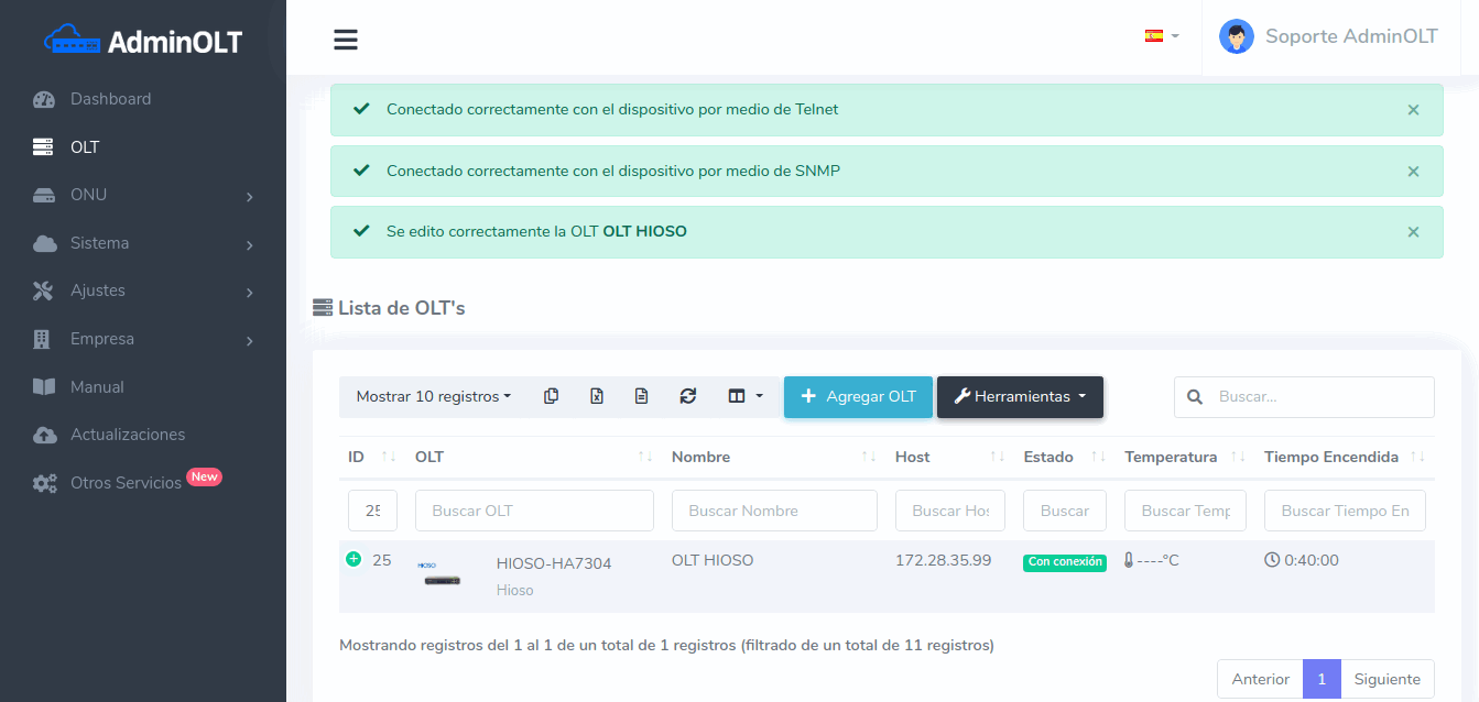 Para el siguiente paso puede consultar el siguiente manual, Configurar Puerto PON Hioso