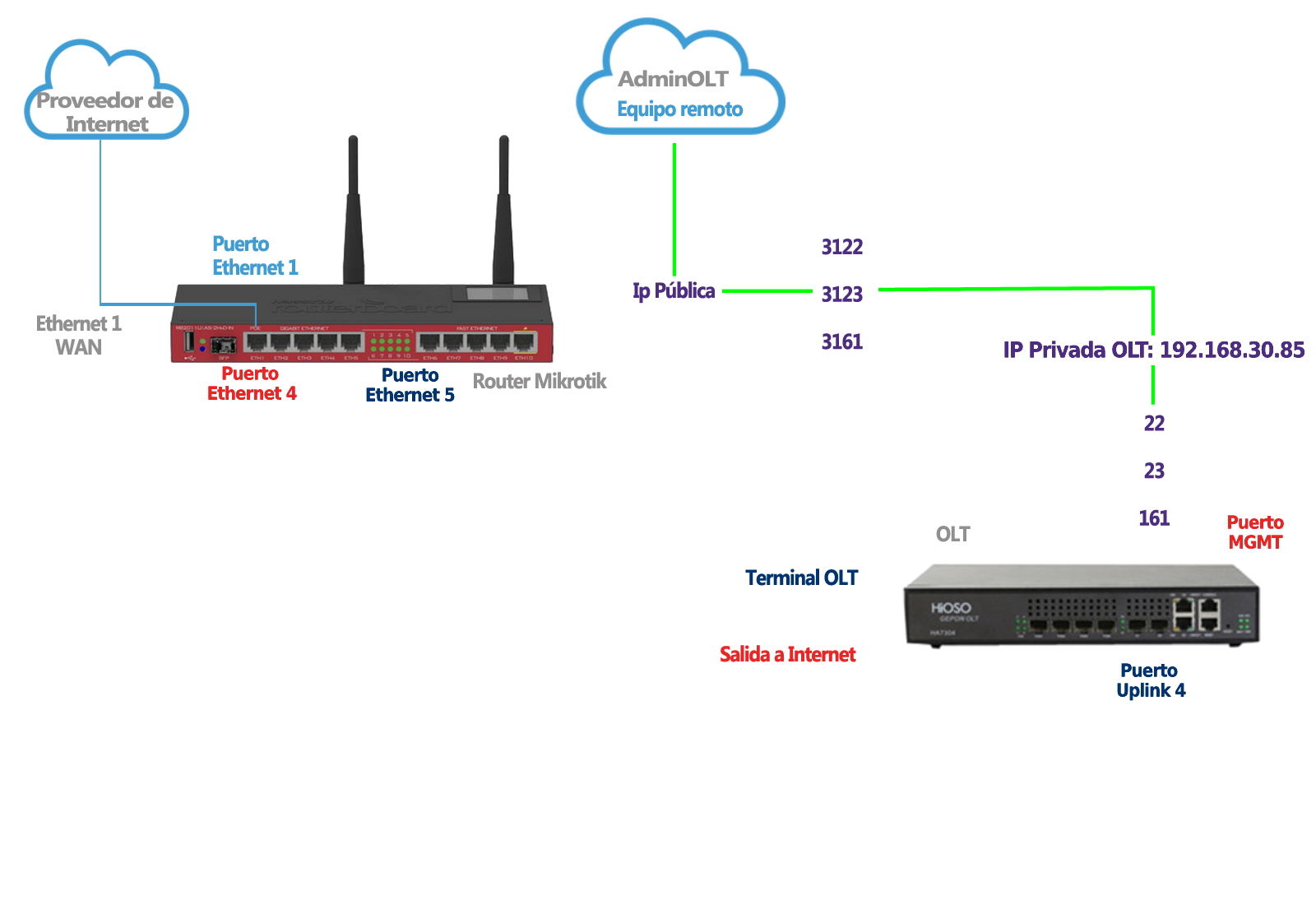 Debe colocar la IP privada que tiene la OLT, para este ejemplo el RB debe ser capaz de enviar ping al OLT.