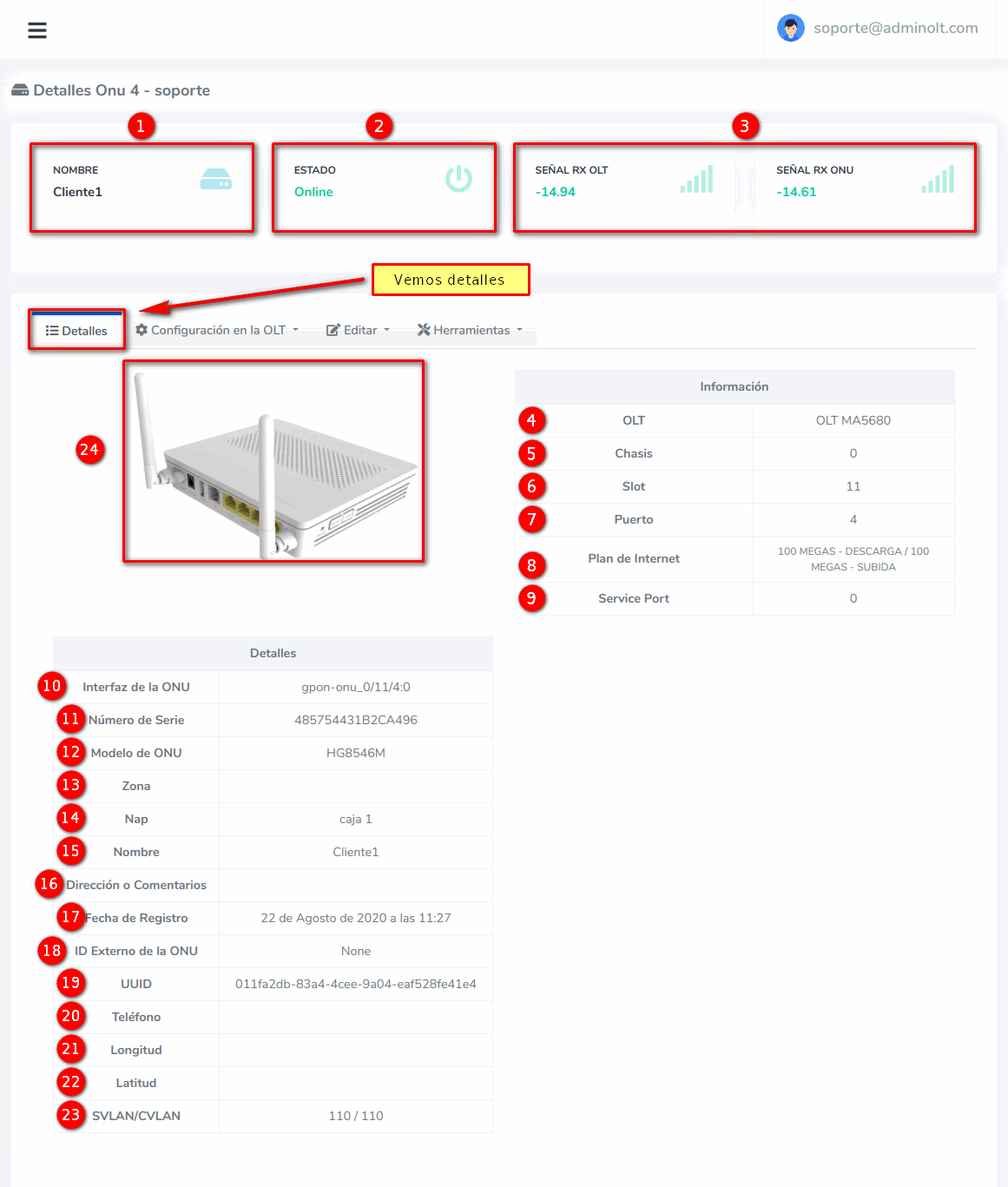 - 18.- ID Externo que se puede usar para consultar información de la misma por el API de AdminOLT