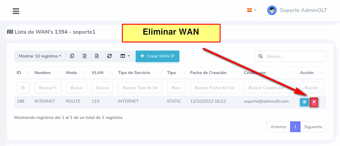 4 Borrar WAN IPV4 creada desde AdminOLT
