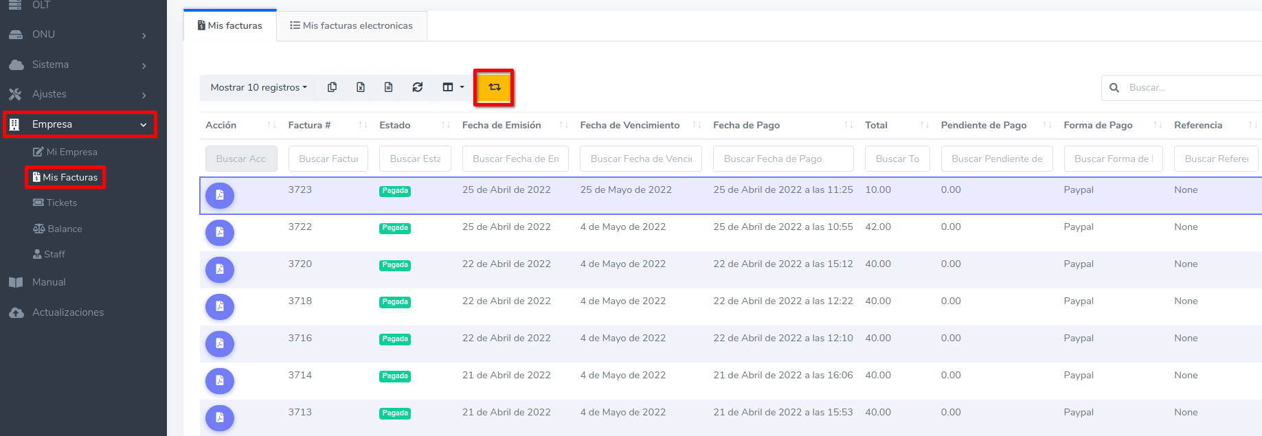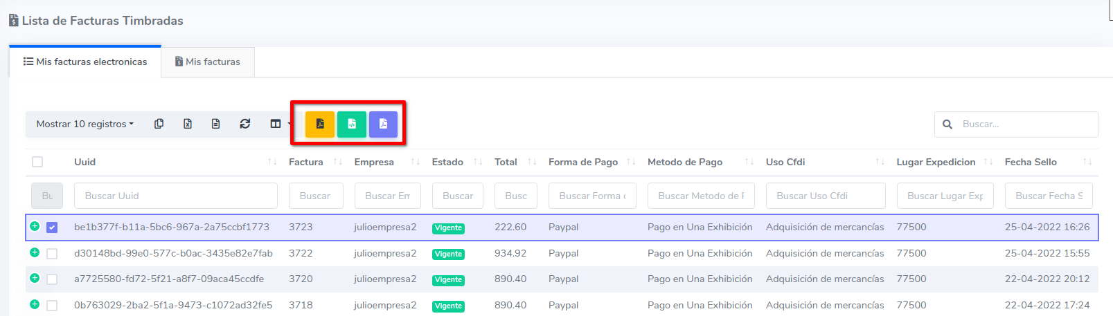 4Lista de facturas timbradas